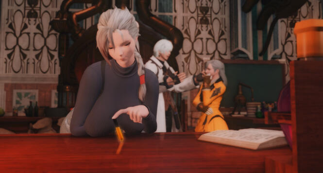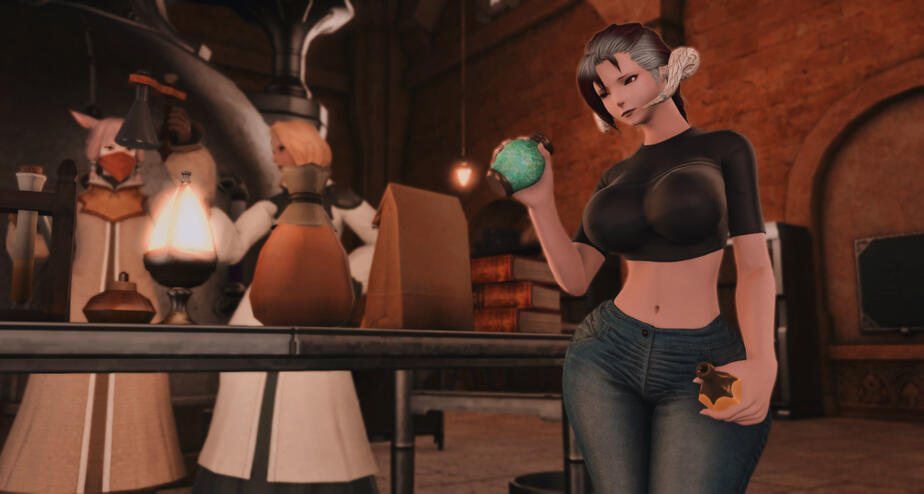 The Cutie with the Booty. Assistant for the Forum. Secretary to the Leveilleurs. An Au Ra banished from her people, who delved into the untested waters of alchemy to regain her control over her own Aether. Waters that turned the slim, graceful handmaiden-in-training into a woman with a figure that turned heads in any room she stood.
